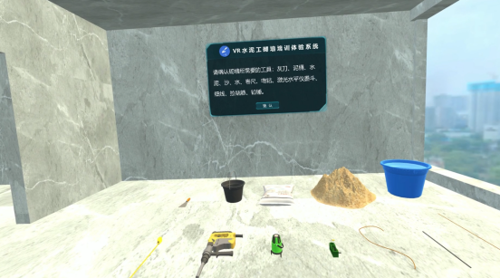 VR技能培訓(xùn)教育,讓服刑人員學(xué)有一技之長。該模塊根據(jù)社會就業(yè)需求,進(jìn)行設(shè)計了外賣配送員、園藝工、水泥工、汽修補(bǔ)胎、汽修輪轂改裝、網(wǎng)絡(luò)通信、電工、服務(wù)員、電焊工、水暖工、瓷磚工、粉刷工等多種職業(yè)技能培訓(xùn)場景,通過模擬場景讓服刑人員在VR中訓(xùn)練相關(guān)的職業(yè)技能,提升其就業(yè)興趣,培訓(xùn)相關(guān)職業(yè)的工作技巧。