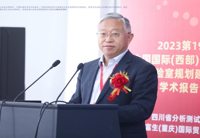 上圖為中國儀器儀表行業(yè)協(xié)會(huì)理事長、中國儀器儀表學(xué)會(huì)監(jiān)事長、中國儀器儀表學(xué)會(huì)智能化儀表及其控制網(wǎng)絡(luò)分會(huì)理事長、西部儀器與實(shí)驗(yàn)室聯(lián)盟理事長、重慶市自動(dòng)化與儀器儀表學(xué)會(huì)理事長、重慶市自動(dòng)化與儀器儀表行業(yè)協(xié)會(huì)理事長-吳朋為大會(huì)致詞