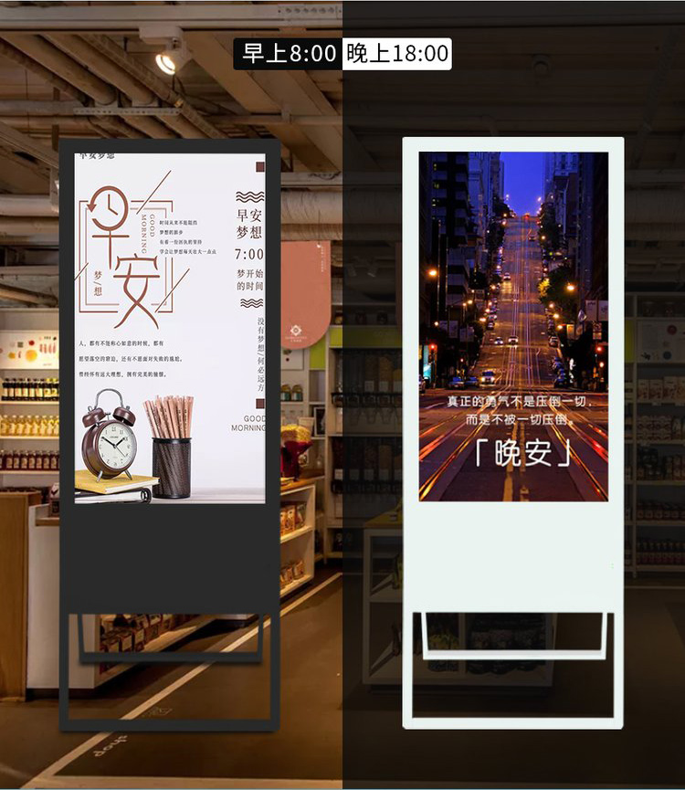 與傳統(tǒng)厚重的廣告機(jī)不同,它輕盈堅(jiān)固,可以靈活擺放,想放哪里就放哪里。
