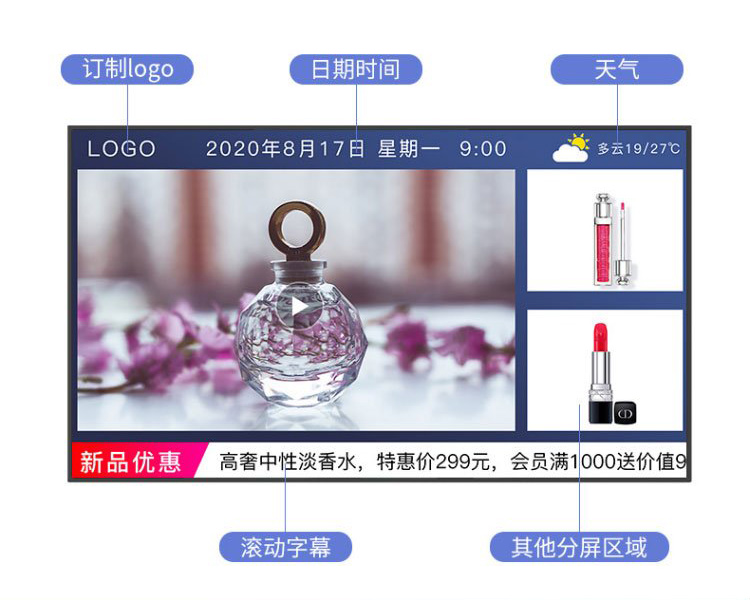 ◆ 智能分屏 ◆ 自動(dòng)循環(huán) ◆ 高清屏幕 ◆ 功能定制