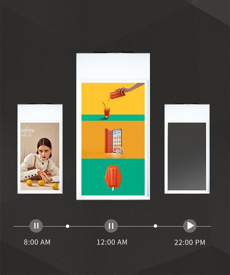 全天多時(shí)段智能開關(guān)機(jī),根據(jù)時(shí)間段精準(zhǔn)投放內(nèi)容,有效傳達(dá)。并且利于節(jié)省能源,延長使用壽命。