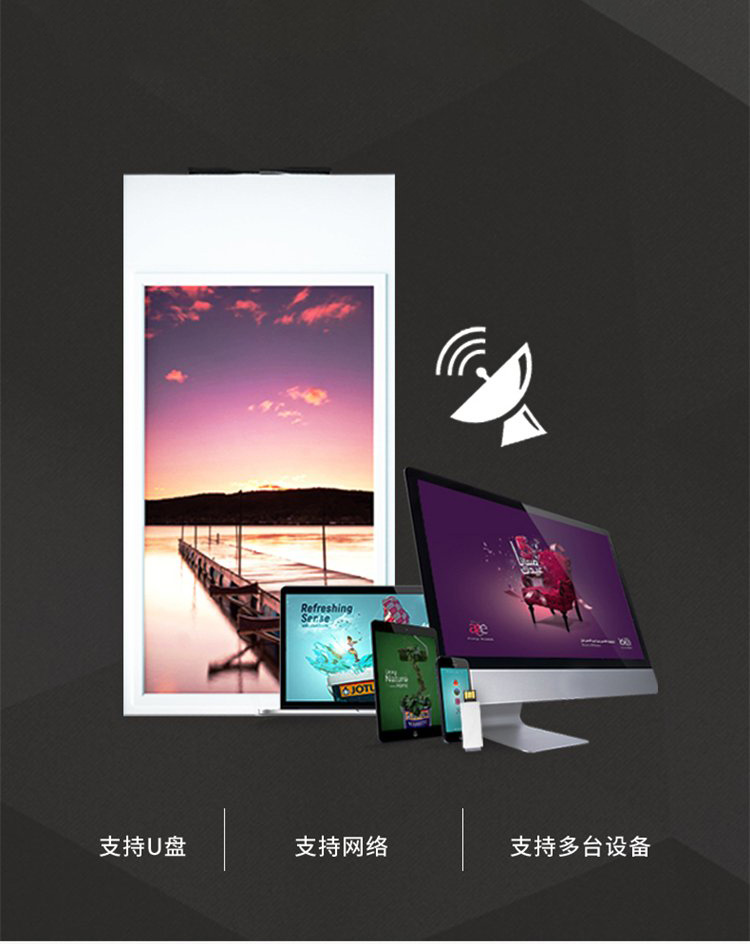 海量廣告,內(nèi)容統(tǒng)一管理,可任意選擇顯示終端,一臺(tái)或多臺(tái)遠(yuǎn)程隨時(shí)隨地一鍵發(fā)布內(nèi)容,