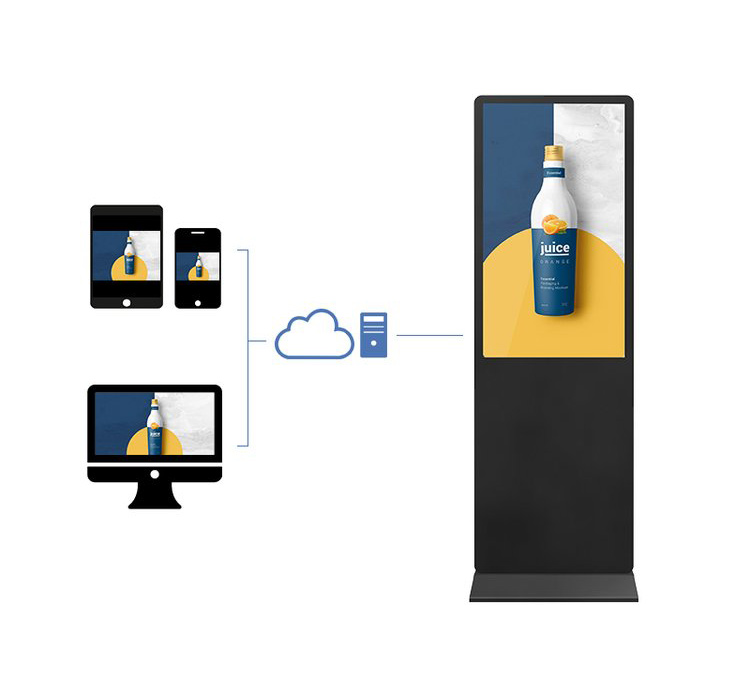 支持手機、平板、電腦云端遠程管理廣告機,在線發(fā)布和更新顯示內容