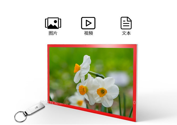 自動(dòng)識(shí)別U盤內(nèi)容,自動(dòng)循環(huán)播放,支持圖片、文本、視頻等文件。