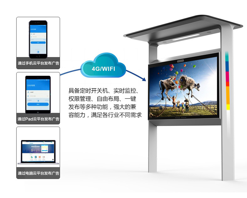 電腦、手機(jī)、Pad隨時(shí)更新發(fā)布,多終端登陸、云端管理、實(shí)時(shí)監(jiān)控
