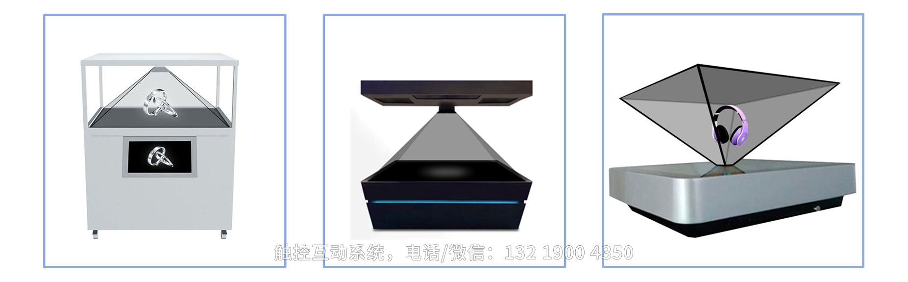360度全息成像系統(tǒng)將三維畫面懸浮在實(shí)景的半空中成像。基于分光鏡成像原理,通過對產(chǎn)品實(shí)拍構(gòu)建三維模型的特殊處理,然后將拍攝的產(chǎn)品影像或產(chǎn)品三維模型影像疊加進(jìn)場景中,構(gòu)成了動(dòng)靜結(jié)合的產(chǎn)品展示系統(tǒng)。不需要人們佩戴任何偏光眼鏡,在完全沒有束縛下就可以盡情觀看3D顯示特效。給人以視覺上的沖擊,具有強(qiáng)烈的縱深感。通常顯示1--100厘米的物體,型號可以顯示200厘米的模型,即可以完全模擬一個(gè)真實(shí)人物,也可配加觸摸屏實(shí)現(xiàn)與觀眾的互動(dòng)。還可做成全息幻影舞臺、產(chǎn)品立體360度的演示、真人和虛幻人同臺表演、科技館的夢幻舞臺等。