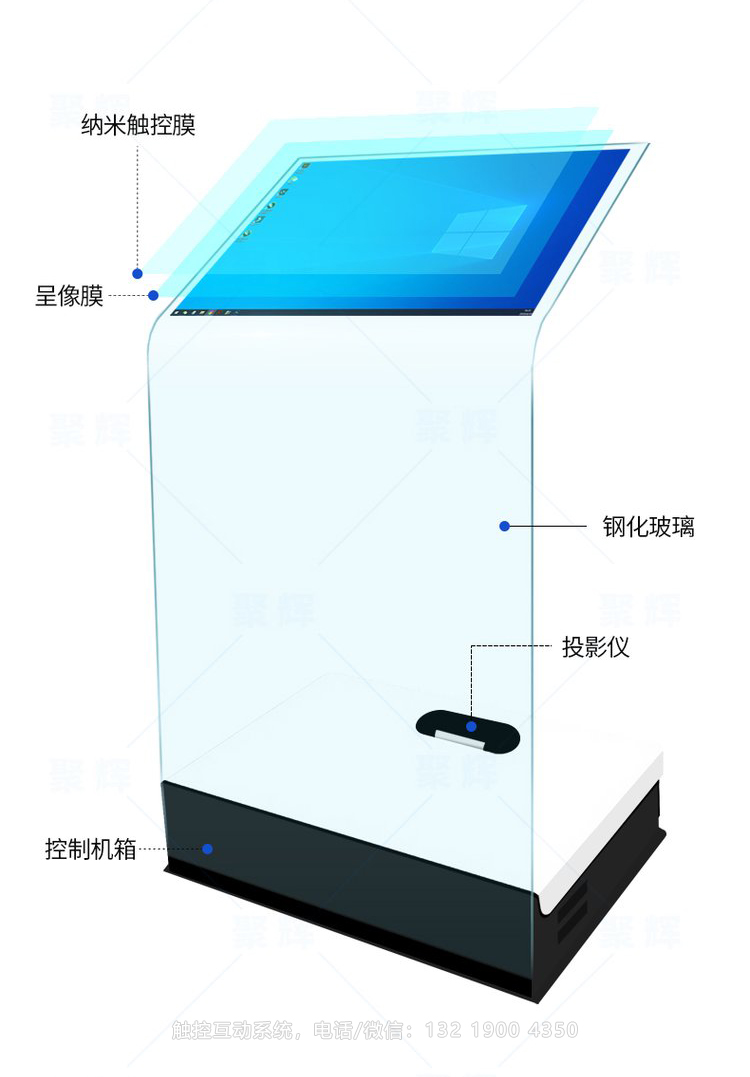斜面觸摸屏水晶講臺_空盈一體機(jī)投影懸幻成像屏