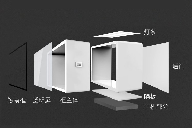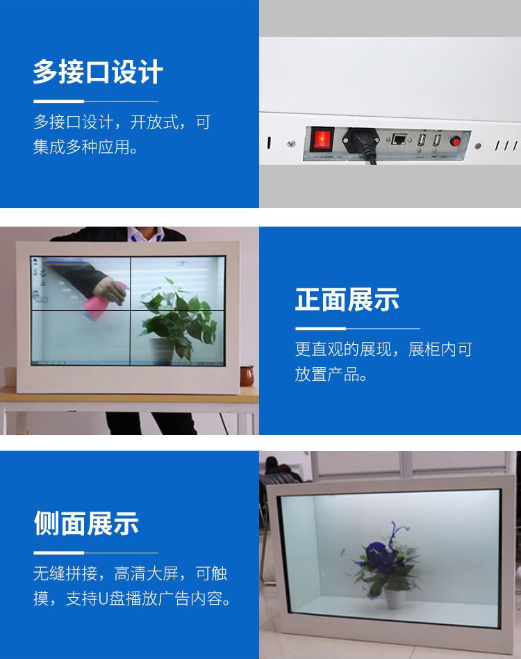 拼接透明展柜,采用全高清,廣視角顯示屏