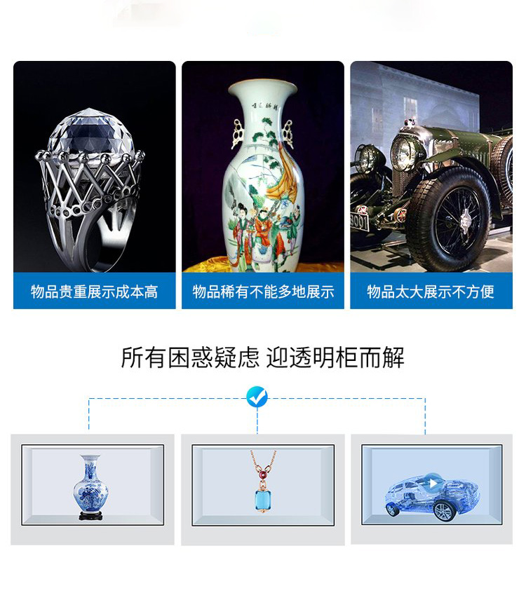 智能透明屏展柜_多媒體展廳_3D全息投影互動觸摸一體機(jī)