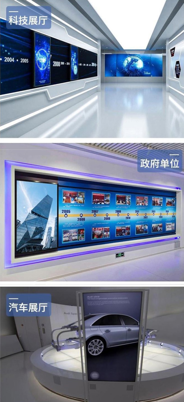 弧形滑軌屏展廳_互動(dòng)上下左右多屏聯(lián)動(dòng)_黨建開合移動(dòng)LED翻轉(zhuǎn)屏