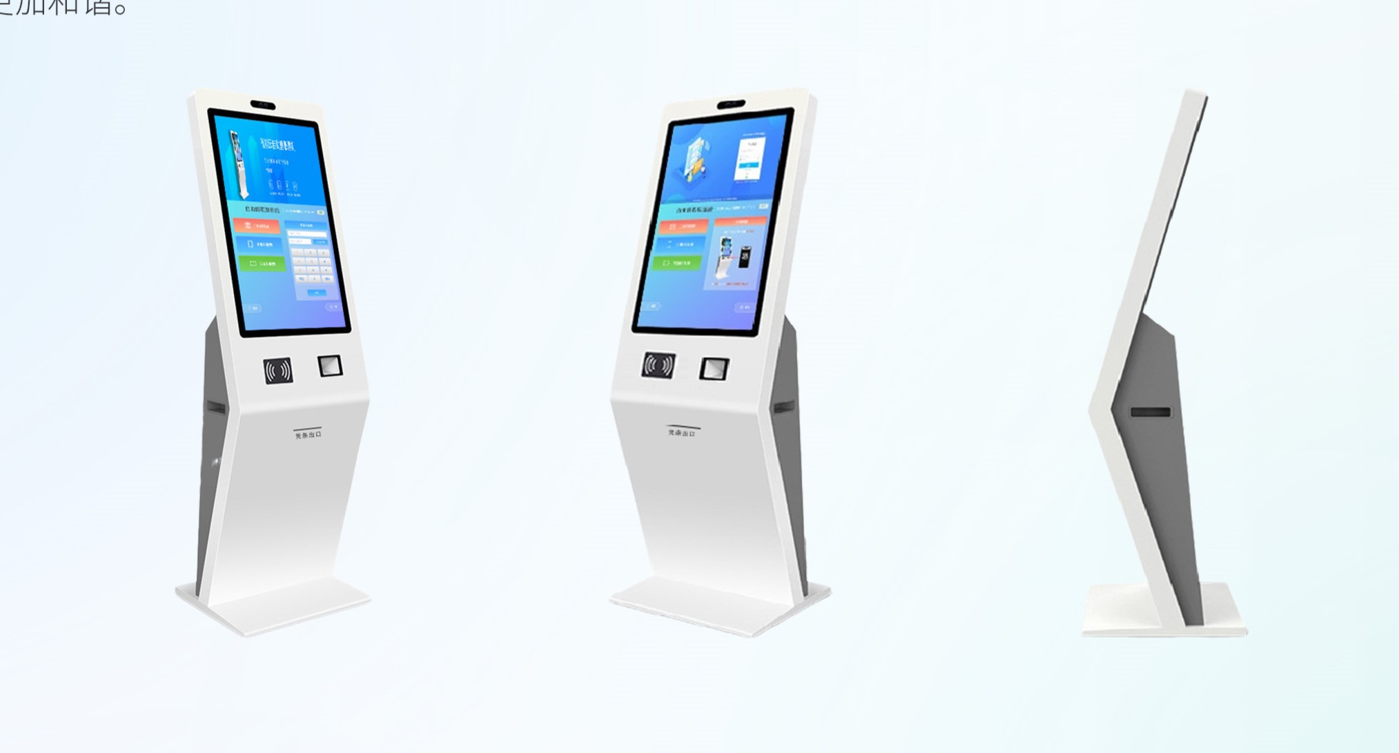 機(jī)器擁有二維碼掃描模塊、身份證及RF卡讀取模塊,能夠滿足醫(yī)療門診環(huán)境下的簽到就診、診間支付等自助服務(wù)場(chǎng)景。患者可憑身份證、電子健康卡、就診二維碼等在自助簽到終端上進(jìn)行簽到候診。機(jī)器小巧,壁掛安裝,極大地節(jié)省醫(yī)院公共區(qū)域的空間。